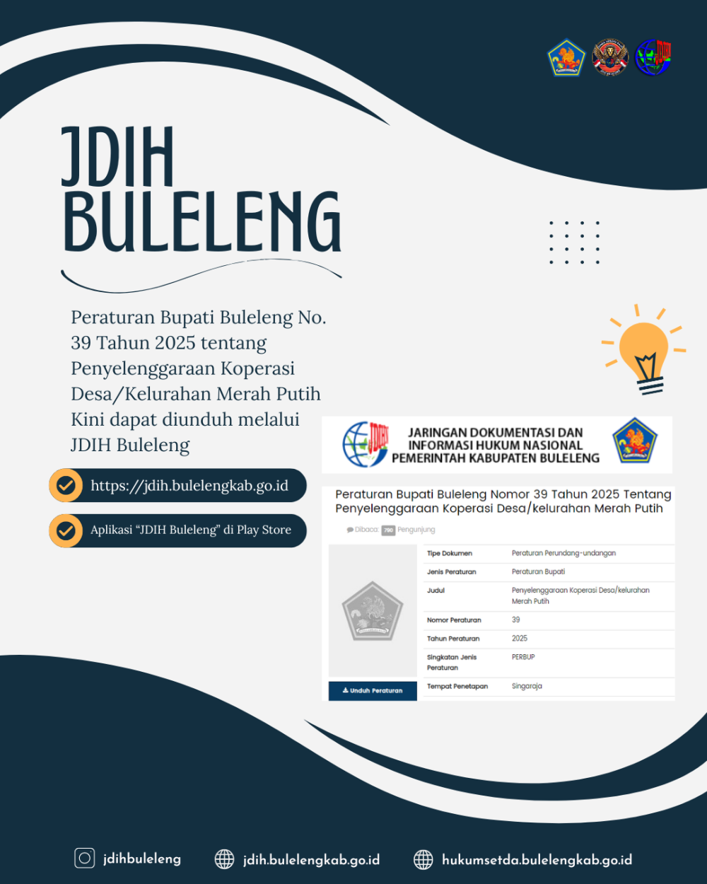 Salinan lengkap Peraturan Bupati Buleleng Nomor 39 Tahun 2025 dapat diunduh melalui